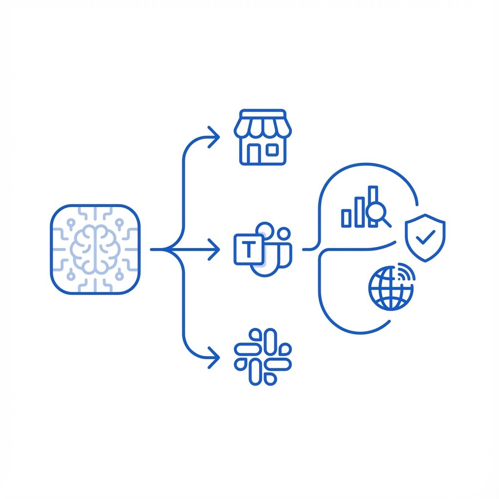 We integrate model SDKs and take your app through store-ready packaging, verification and publishing for OpenAI Apps, Microsoft Teams, Slack and more.