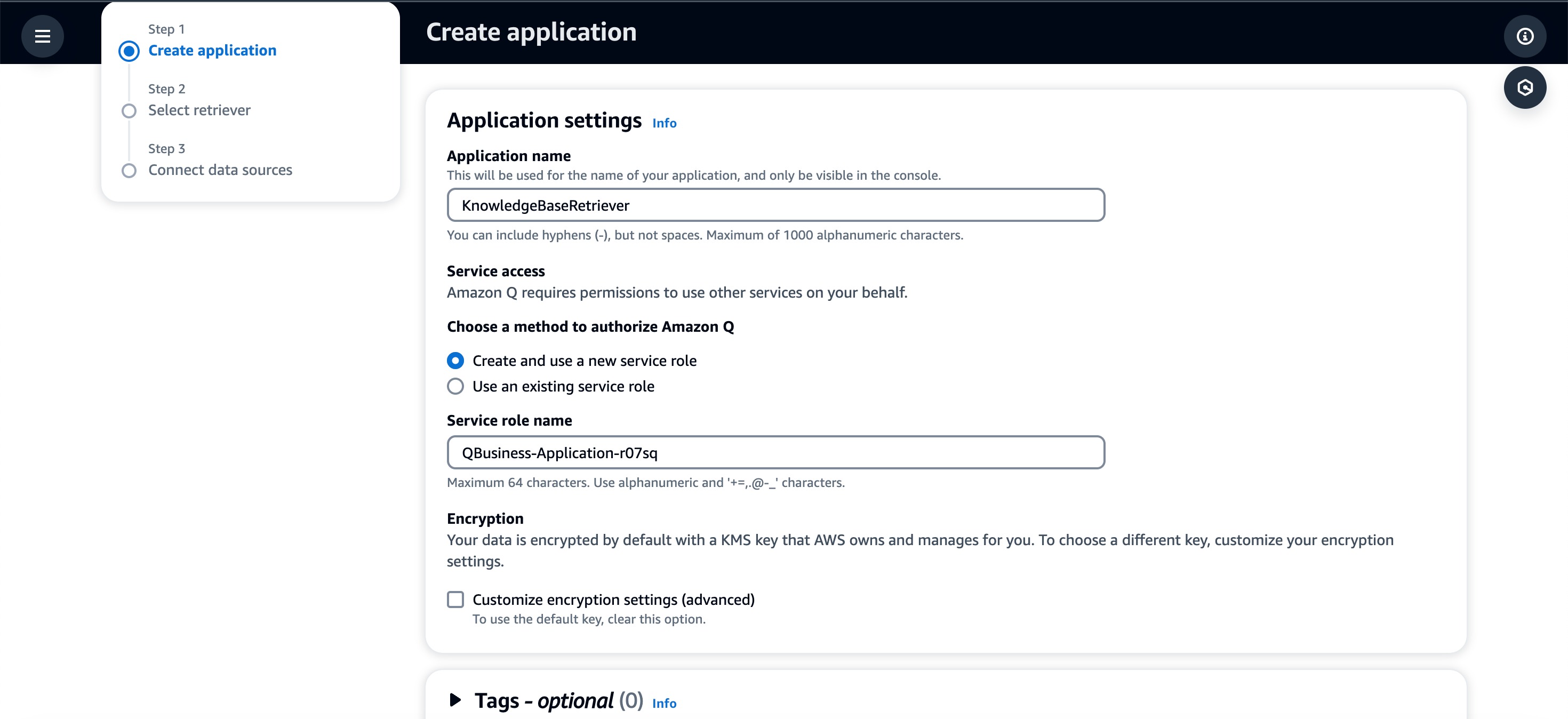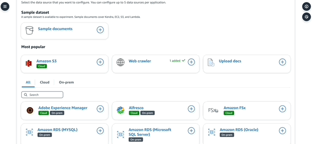 4. Next, we have to setup our “retrievers” or data sources. Looks like they’ve built in RAG capabilities into the application from within the UI. The application is based on Lambda functions + Kendra (their own version of vector DB) + custom IAM