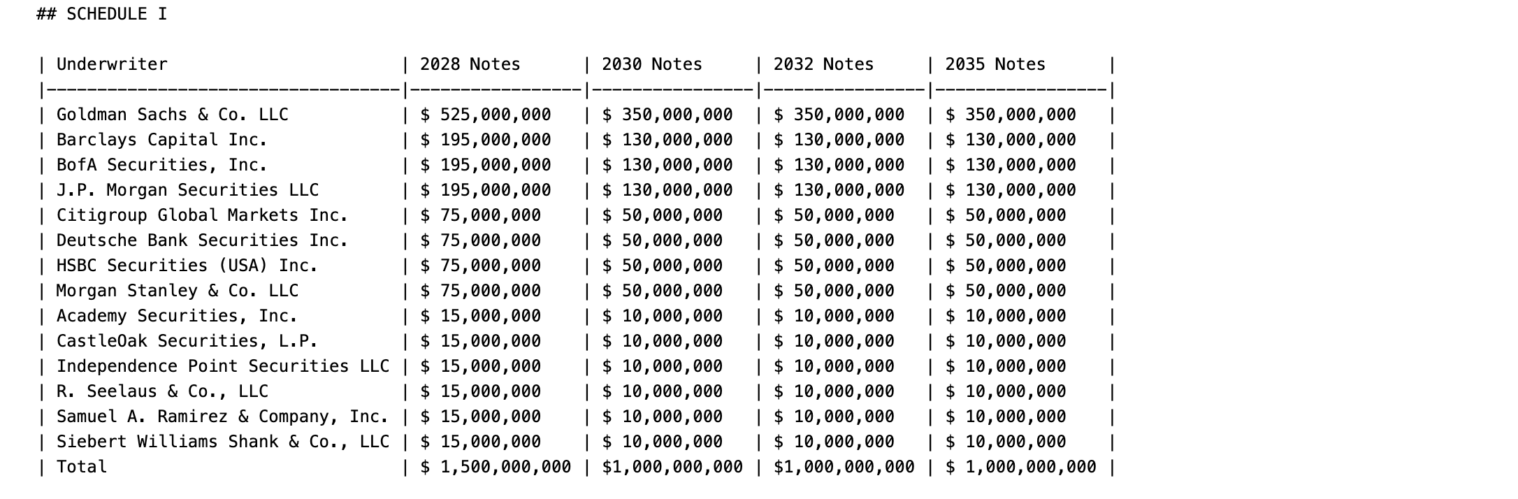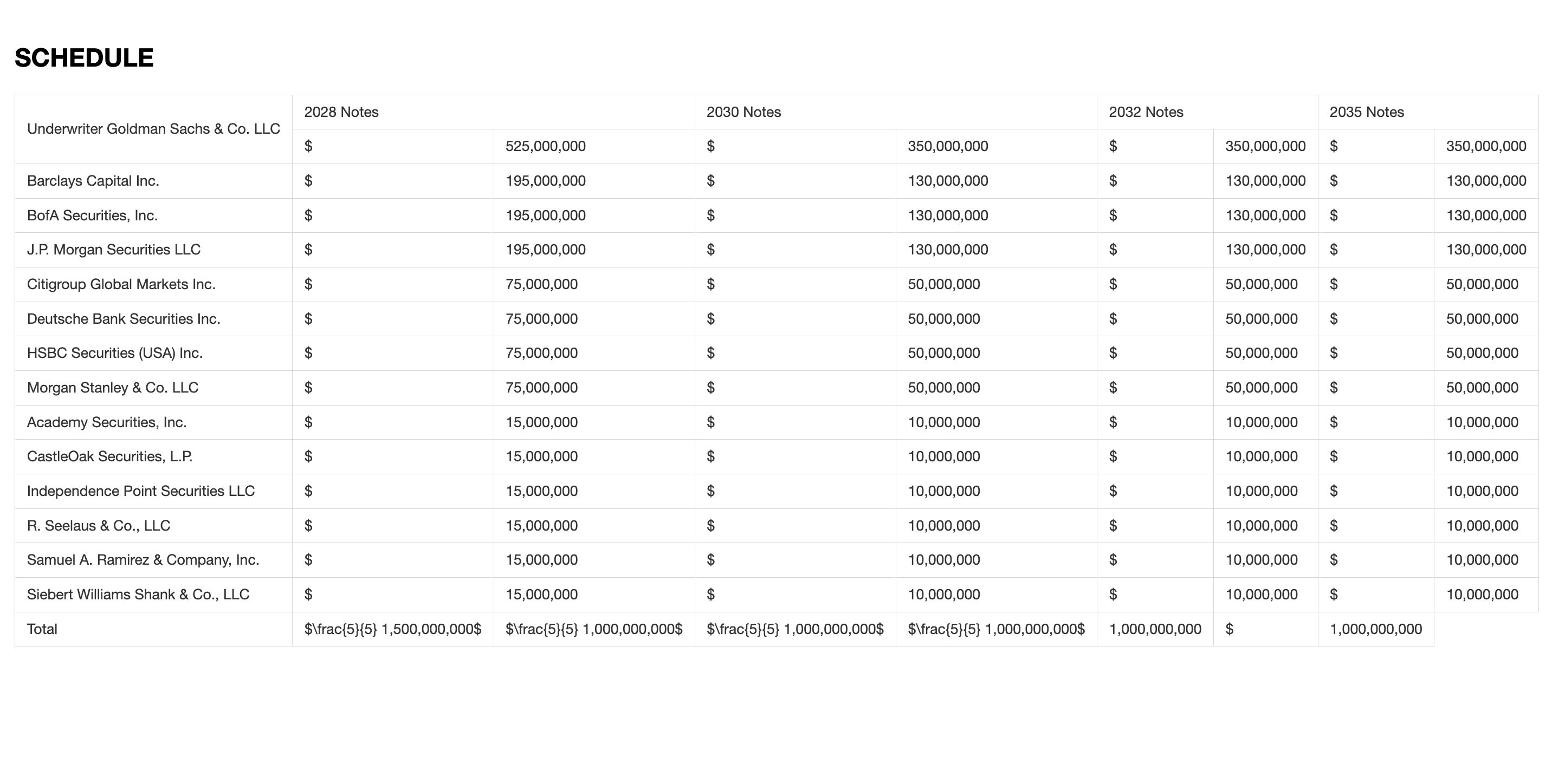 Below is one of the actual pdf screenshot "underwriting table" from Apple SEC filling document FORM 8-K May 5 , 2025 used for our detailed case study , we will be using this as "ground truth":