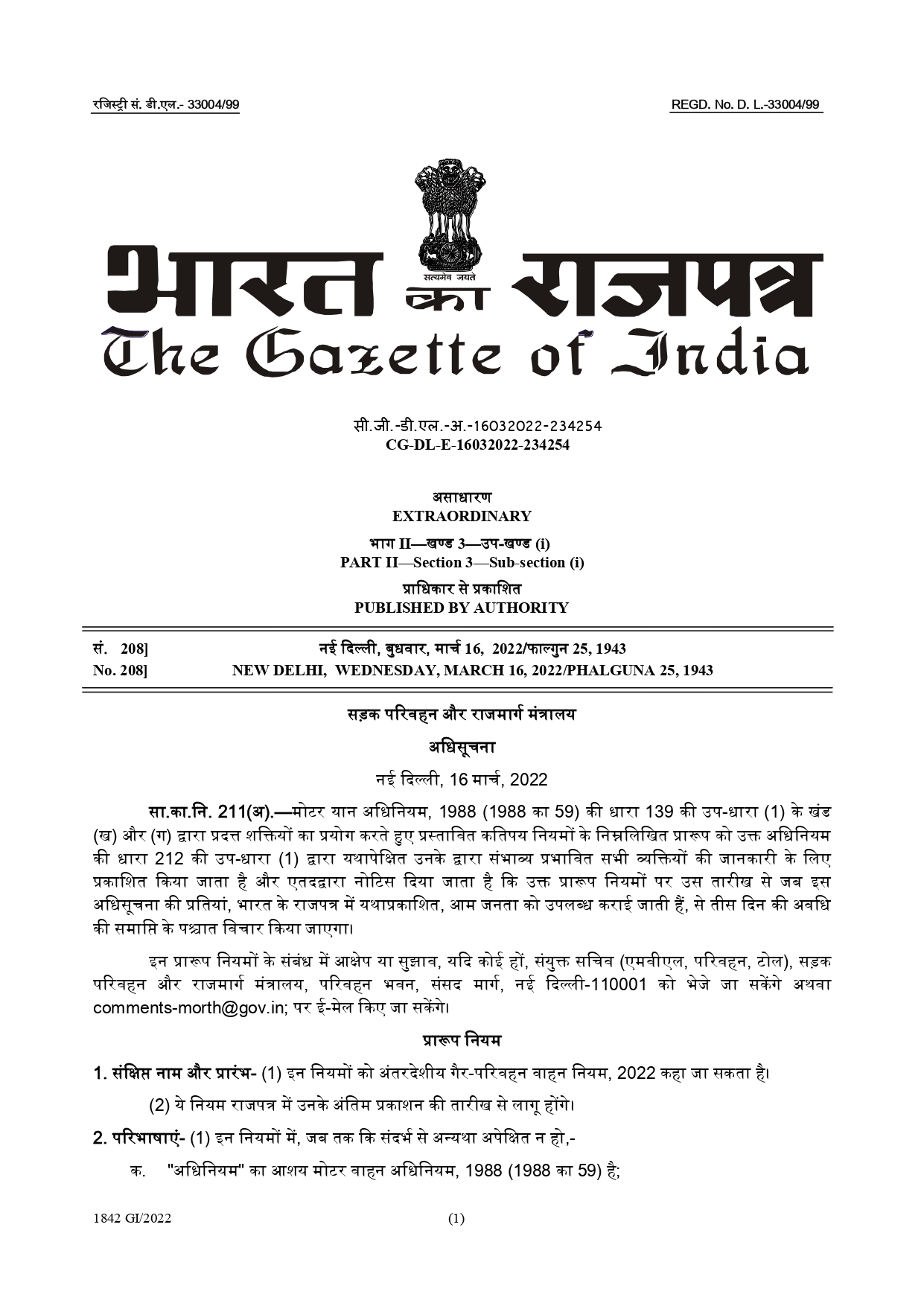**\[सं. 208\] नई दिल्ली, बुधवार, मार्च 16, 2022/फाल्गुन 25, 1943 No. 208\] NEW DELHI, WEDNESDAY, MARCH 16, 2022/PHALGUNA 25, 1943**