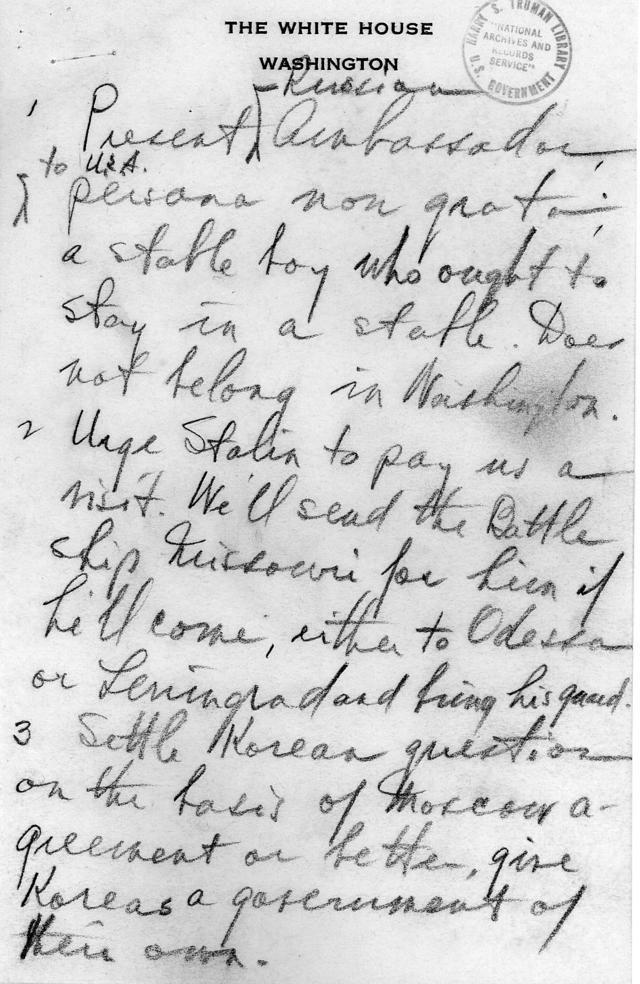 Taking the case of handwritten notes further, here is an example of a handwritten note from 1948 Election campaign in the US: